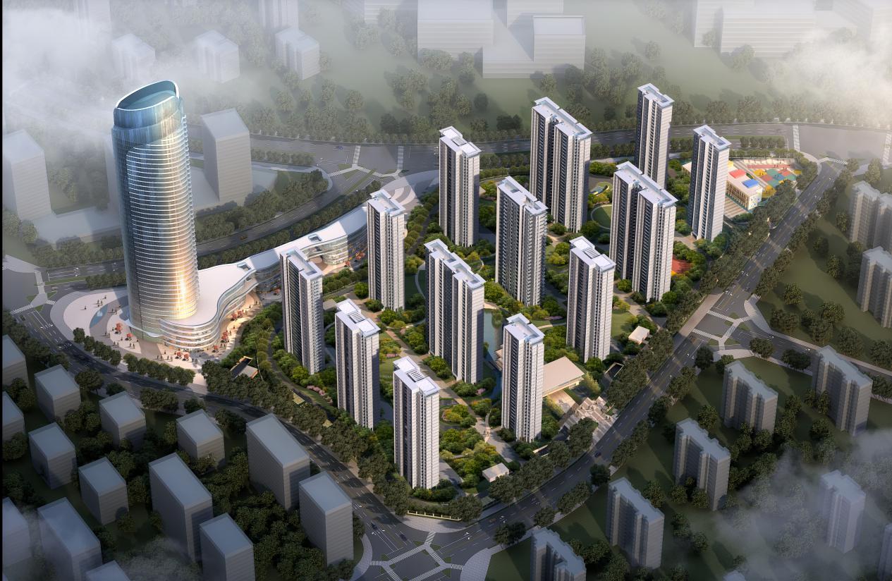 項目占地面積約209畝,總建筑面積約40萬方,容積率約2.8,綠化率達30%。本項目建筑設計遵循“以山水之蘊,天地之氣充盈其間,盡顯人文內(nèi)涵”的原則,整個項目由13棟住宅樓和1棟199米超高層寫字樓(金融中心)和2棟智創(chuàng)中心,1棟鄰里中心,1個9班雙語幼兒園組成。