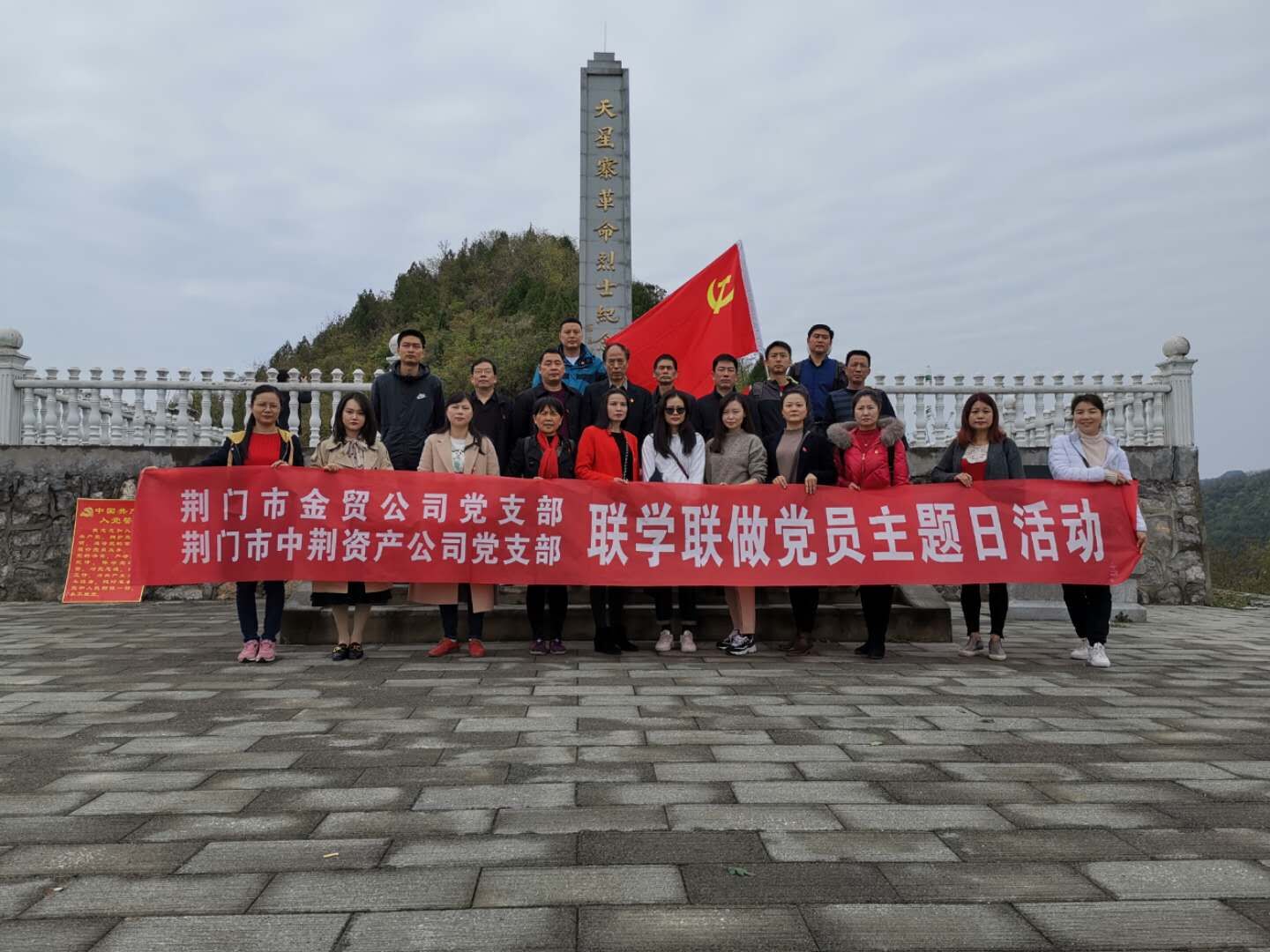 2019年4月3日(星期三)上午,市中荊資產(chǎn)公司機關(guān)支部、市金貿(mào)公司機關(guān)支部組織全體黨員在荊門市仙居鄉(xiāng)天星寨革命烈士紀念碑聯(lián)合開展了2019年4月份聯(lián)學(xué)聯(lián)做主題黨日活動。該活動以“學(xué)習(xí)貫徹全國‘兩會’精神、開展國家安全專題學(xué)習(xí)、學(xué)習(xí)‘共產(chǎn)黨員不準信仰宗教’及開展形式多樣的革命傳統(tǒng)教育”等為主題的2019年第4個“黨員主題活動日”學(xué)習(xí)大會。