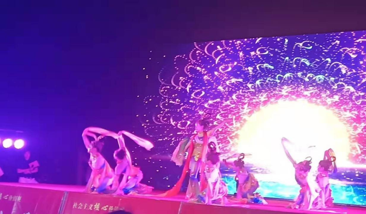 整場晚會舞姿優(yōu)美,歌聲悠揚(yáng)。文藝演出在歌伴舞《蒸蒸日上》中拉開序幕,隨著貼近基層、宣傳創(chuàng)城的詩朗誦《創(chuàng)城交響曲》、小組唱《文明在哪里》、小品《文明旅游》、獨(dú)唱《家風(fēng)》、合唱《大家一起來》等精心編排宣傳創(chuàng)城的優(yōu)秀文藝節(jié)目輪番上演,整場晚會節(jié)目緊湊,緊扣主題。以晚會的形式宣傳社會主義核心價(jià)值觀,提高市民創(chuàng)城的知曉率,參與度,既精彩又寓意深遠(yuǎn),博得現(xiàn)場觀眾陣陣掌聲。
